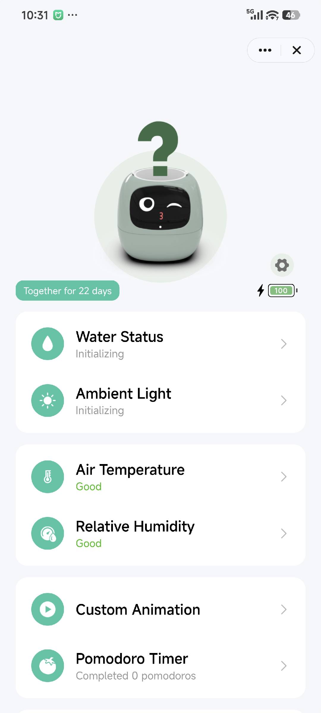 If you are unable to choose a plant type in the app, it is usually because Ivy has not detected a plant yet. When a plant is detected for the first time, Ivy will display a question mark on the screen.