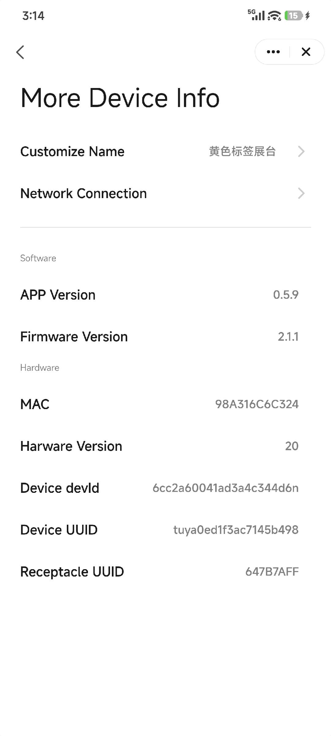 - In the app, go to Settings → More Device Info.